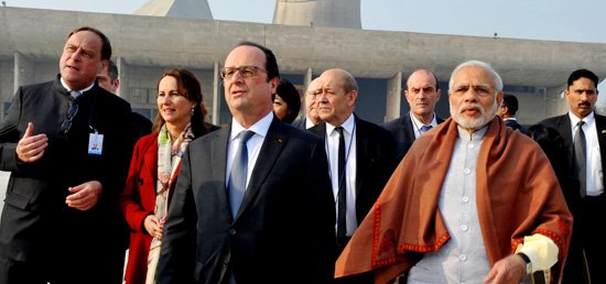 Business, security and culture – these three pillars of India-France relations were showcased as French President Francois Hollande began a three-visit to India from Chandigarh – India’s northern city designed by Swiss-French architect Le Corbusier – and spoke about plans to deepen counter-terror cooperation and economic relations.