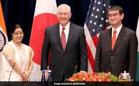 India’s External Affairs Minister Sushma Swaraj met US Secretary of State Rex Tillerson and Japanese Foreign Minister Taro Kano on the sidelines of the UN General Assembly meeting in New York City taking up issues of connectivity, security and respect for international norms. The joint statement of the ministerial meeting highlighted three key areas – maritime security, connectivity and proliferation.