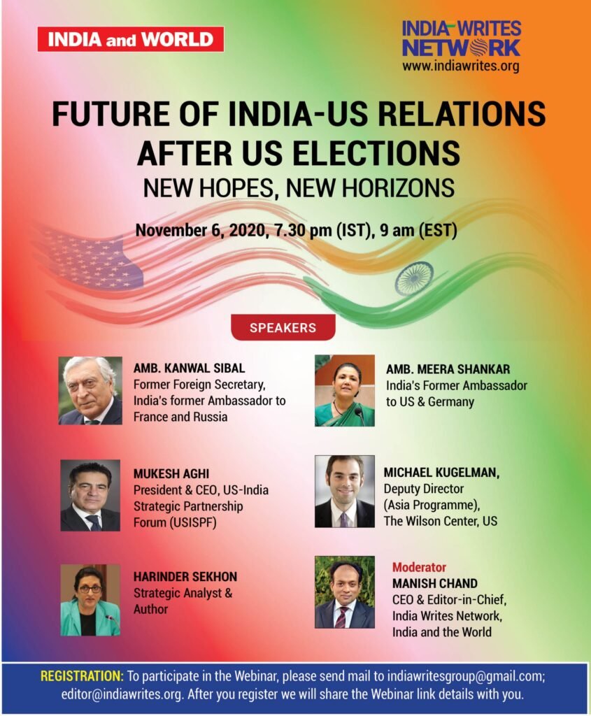 Organised by India Writes Network, India and the World magazine & The Global India Insights (TGII), the Webinar entitled, “India-US Relations after the US Elections: New Hopes, New Horizons” will explore the contours of the India-US relations, famously described by President Obama as “the defining partnership of the 21st Century,” under the new US administration […]
