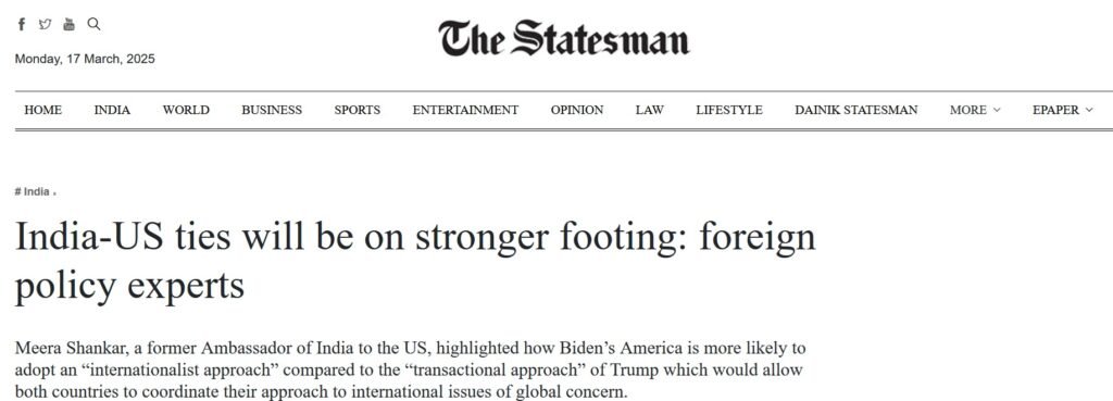 America’s ties with India will go from strength to strength under Democratic President-elect Joe Biden, but the next US administration will continue to see China as a strategic rival, according to eminent experts and ex-diplomats. “India’s rise does not cause concern in the US as China’s rise does. Besides, India is not in a race […]