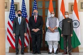 Amid growing global turbulence, External Affairs Minister S. Jaishankar has called for enhanced partnership between India and the US to protect rules-based international order and combat regional and global challenges. In his opening remarks at the 3rd India-US 2+2 Ministerial Dialogue in New Delhi on October 27, 2020, Mr Jaishankar said that most countries, including India, are “giving security a greater salience in their foreign policy ”due to the “much greater stress and faultlines” in the world today. Foreign Minister Jaishankar,Defense Minister Rajnath Singh, and their US counterparts, Mike Pompeo and Mark Esper, respectively, are participating in the dialogue at the Hyderabad House. Mr Jaishankar said that he attaches great importance to this dialogue for three reasons:“First, we live in a more uncertain world with much greater stresses and sharper faultlines. For most countries, that means giving security a greater salience in their foreign policy. As major powers, this is even more so in our case,” he said. Second he said that over the last two decades, India-US ties have grown steadily in its substance, facets, and significance. “The accompanying comfort levels today enable us to engage much more intensively on matters of national security. This format is clearly tailored to that purpose,” he added. Third, he said that at a time when it is particularly important to uphold a rules-based international order, the ability of India and the US to work closely in defense and foreign policy has a larger resonance. “Together, we can make a real difference when it comes to regional and global challenges, whether it is in respecting territorial integrity, promoting maritime domain awareness, countering terrorism or ensuring prosperity,” he added. The past two editions of the 2+2 Dialogue saw the signing of key foundational defense pacts. India has already signed the General Security of Military Information Agreement (GSOMIA), Logistics Exchange Memorandum Agreement (LEMOA), and the Communications and Information Security Agreement (CISMOA).This time also the two countries are expected to sign BECA, the fourth and last of the foundational pacts. The Basic Exchange and Cooperation Agreement (BECA) will enable India to harness US expertise on geospatial intelligence and help the Indian military get better accuracy of its weapon systems.With the India-India border standoff showing no sign of easing, the BECA could come in handy for India it could help the Indian armed forces to have access to the US satellite image and sensory data. “The formal signing of BECA will cap the process of closer strategic intertwining of India and the US, and will pave the way for upscaling defense partnership to another level during the next presidency,” said editor-in-chief of India and World Magazine Manish Chand. “The burgeoning defense ties will be further cemented by the likely signing of a pact on defense intelligence sharing and another pact on maritime information sharing. The two sides are also expected to flesh out proactive and expanded collaboration on forging cooperation architecture to shape a free and open Indo-Pacific, which has emerged as the centrepiece of strategic engagement between the world’s largest democracies,” he added.