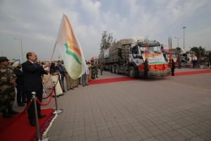 Putting the Afghan people first, India has decided to gift 50,000 MT of wheat to the neighbouring country suffering a severe food crisis. In a ceremony held at Amritsar on February 22, India’s Foreign Secretary Harsh Vardhan Shringla, along with Afghan Ambassador Farid Mamundzay and World Food Program Country Director Bishaw Parajuli, flagged off the first convoy of 50 trucks carrying 2500 MT of wheat assistance from India to Afghanistan via Pakistan at the Attari border.
