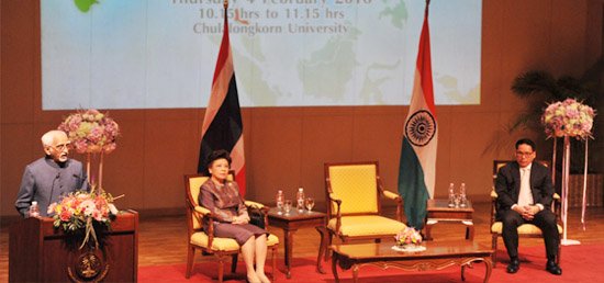 Amid the mutating geopolitical order in the Asia-Pacific region marked by the rise of China and India, Vice-President Hamid Ansari has underscored the 3C mantra of New Delhi’s relations with ASEAN pivoted around “Commerce, Culture and Connectivity” and stressed the need for all countries to exercise “restraint” in protecting sea lanes of communication. The vice-president signalled a more proactive role by India in fructifying the vision of an ASEAN community and pushed for fast-tracking code of conduct on the disputed South China Sea. Maritime security: Restraint on South China Sea ansari-paradeMaritime security and intensifying security cooperation across the spectrum between India and Thailand and ASEAN formed the overarching theme of Mr Ansari’s visit to Bangkok, the first vice-presidential visit from India to Thailand in five decades. Issues related to defence and security figured prominently in discussions between Mr Ansari and Thai Prime Minister Gen. Prayut Chan-o-cha. Taking a big-picture view in his lecture entitled “India, Thailand and ASEAN: Contours of a Rejuvenated Partnership,” at Chulalongkorn University in Bangkok on February 4, the vice-president linked India’s burgeoning relations with the dream of an ASEAN century and underlined that “India is ready to meet the expectations of our friends in the region and play a more pro-active role in the processes leading to the ASEAN Community.” In this context, upgrading security cooperation will play a crucial role in investing this economic-focused relationship with greater strategic content. “We believe that all trade routes and the sea lanes must be protected from traditional and non-traditional threats and all countries using these international waters must act with responsibility and restraint,” he said.  “As the countries in the ASEAN region strive for greater economic integration, the safety of sea lanes – critical for maritime trade and commerce, maritime security, and access to marine resources in accordance with accepted international norms, continues to assume greater significance.” Against the backdrop of competing sovereignty games by five claimants to parts or whole of South China Sea and the increasingly embittered power play between the US and China, the vice-president said that India “support collective efforts by ASEAN Member States and China to conclude the Code of Conduct to keep peace and stability in the region.” The importance of freedom of navigation can’t be overstated given the fact that more than 80 per cent of India’s trade cargo, including oil imports, passes through sea lanes of communication in the Indian Ocean. Similarly, the proliferation of a host of non-traditional threats such as piracy, smuggling, transnational crimes, drug-trafficking and “the spreading tide of extremism and terrorism” is set to push India and ASEAN closer to accelerate security cooperation across the spectrum. “Thailand and India already have a robust cooperation in this area and I am glad that we have also taken steps to institutionalize such cooperation at the regional level.” ASEAN: Partner in India’s resurgence Most important, Mr Ansari evoked a forward-looking vision for enlisting ASEAN’s proactive participation in India’s seminal projects of national resurgence like Make in India, Skill India, Smart Cities and Digital India. “There is a special emphasis on India-ASEAN cooperation in our domestic agenda on infrastructure, manufacturing, trade, skills, urban renewal, smart cities and Make in India programmes.” “Connectivity projects, cooperation in Science and Technology development and people-to-people exchanges are to be the springboard for regional integration and co-prosperity.” Notes for an Asian Century