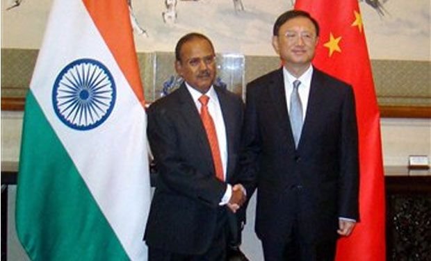 In Better Times: India’s National Security Adviser Ajit Doval (left) and China’s State Councillor Yang Jiechi during their first meeting in Beijing in September 2014. Ahead of National Security Adviser Ajit Doval’s visit to Beijing for a BRICS meeting, China has signalled a hardening of its posture on the continuing standoff along the Sikkim border by reiterating that the only way to resolve the impasse is for India to unconditionally withdraw troops as a precursor to any talks. Alluding to remarks of China’s Foreign Minister Wang Yi, the spokesperson of China’s Foreign Office, Lu Kang, pinned the blame on India for trespassing into China’s territory and asked for an unconditional pull-out by India. “I have stressed many times that the crux of this incident is that the Indian border troops illegally trespassed into China’s territory and the solution as Wang put it is for Indian border troops to pull-out unconditionally. This is a precondition basis for any meaningful talks between the two countries,” said the spokesperson in Beijing on July 26.