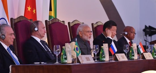 - India’s Prime Minister Narendra Modi at the inaugural session of the BRICS summit in Goa on October 16.