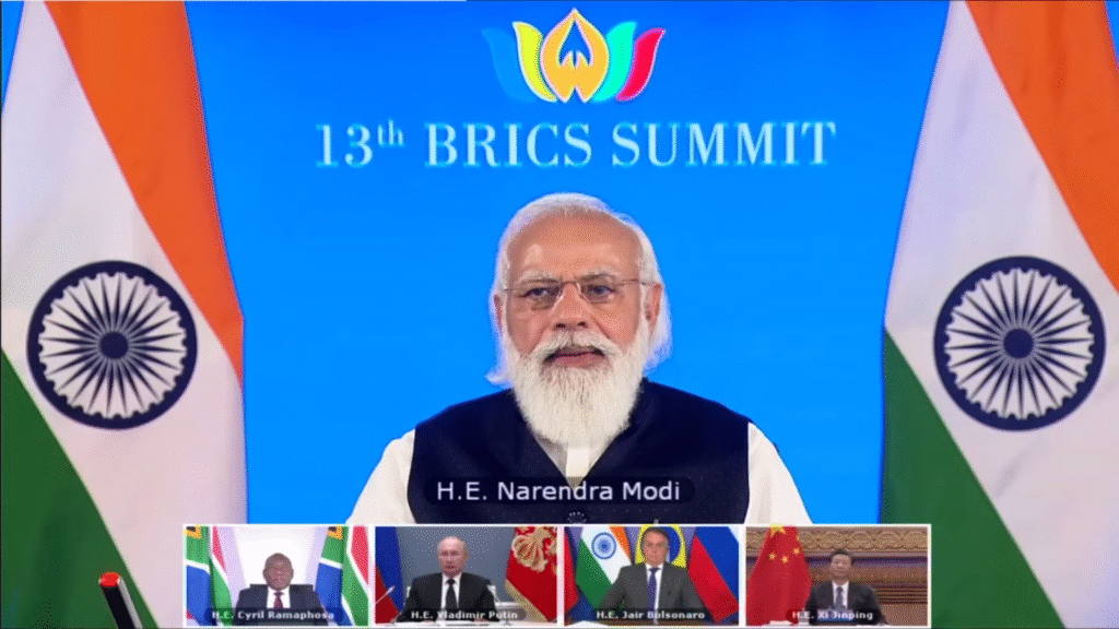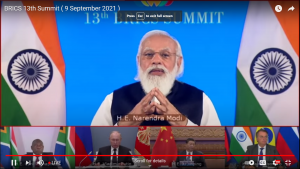 The agenda for the 13th BRICS summit, held under India’s presidency, was adopted virtually by the leaders of five countries, including PM Modi, Chinese President Xi Jinping, Russian President Vladimir Putin, Brazil’s President Jair Bolsonaro and South African President Cyril Ramaphosa. The BRICS leaders adopted the BRICS Counter Terrorism Action Plan and a landmark standalone document on strengthening and reforming the multilateral system. The BRICS counter-terrorism action plan focuses on result-oriented and pragmatic cooperation among the five countries, which will include, among other things, intelligence and information sharing among law enforcement agencies for preventing and combating terrorism; inter-agency cooperation; and sharing of best practices for curbing radicalisation and misuse of the internet by terrorists. The action plan also envisages enhanced cooperation in the growth of illegal drug production and trafficking in the region. In his opening remarks, President Putin focused on the deepening crisis in Afghanistan in the wake of the Taliban takeover of the country and called for enhanced intra-BRICS cooperation in preventing Afghanistan from becoming the hub of terrorism and narcotics. President Ramaphosa exhorted the internatonal community to support TRIPS waiver for enhancing production of anti-Covid-19 vaccines and to facilitate equal global access to global public heath goods.