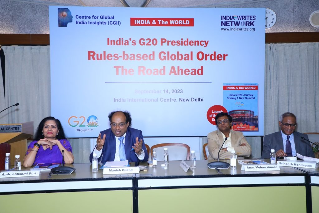 The panel discussion, titled, “India’s G20 Presidency: Rules-based Global Order and The Road Ahead,” was organised by India Writes Network and Centre for Global India Insights (CGII), a think tank focused on global affairs, at India International Centre on September 14. Besides Pardeshi, eminent diplomats and experts who participated in the discussion included South Africa’s High Commissioner to India H.E. Mr. Joel Sibusiso Ndebele, Amb. Lakshmi Puri, Former UN diplomat and author, Amb. Mohan Kumar, India’s former Ambassador to France, Srikanth Kondapalli, Dean, SIS, Jawaharlal Nehru University. The conference was moderated and chaired by Manish Chand, CEO, India Writes Network & Director, Centre for Global India Insights.