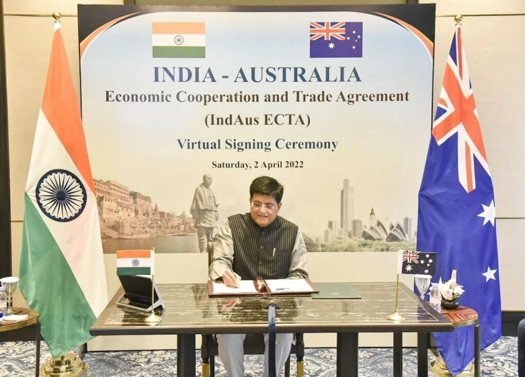 Taking a major leap forward in their economic ties, India and Australia have signed a historic trade deal which envisages duty free access for over 95 per cent of Indian goods to Australia, including textiles, leather, jewellery and sports products. The India-Australia Economic Cooperation and Trade Agreement was signed by Commerce and Industry Minister Piyush Goyal and Australian Minister for Trade, Tourism and Investment Dan Tehan at a virtual ceremony, in the presence of Prime Minister Narendra Modi and his Australian counterpart Scott Morrison on April 2. Hailing the long-negotiated trade agreement, PM Modi said: “This is truly a watershed moment for India-Australia relations.” Mr Morrison underlined that the pact will further deepen Australia’s close ties with India. The agreement will help in taking bilateral trade from $27 billion to $45-50 billion in the next five years, said Mr Goyal. “AI ECTA would also further strengthen the people-to-people links between our countries,” said Mr Tehan. “This agreement will turbocharge our close, long-standing and highly complementary economic relationship in areas such as critical minerals, professional services, education and tourism,” Mr Tehan said. “It will create new opportunities for jobs and businesses in both countries, while laying the foundations for a full free trade agreement.”
