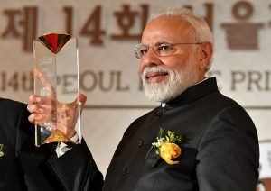 SEOUL: With the nation’s attention focused on the Kashmir terror attack, India’s Prime Minister Narendra Modi called on the world to join hands to eliminate the scourge of terrorism which respects no borders.The prime minister’s strongly-worded exhortation to the world to “join hands to completely eradicate terrorist networks and their financing, supply channels, and to counter terrorist ideology and propaganda,” came in his speech after he received the prestigious Seoul Peace Prize in the South Korean capital on February 22. Prime Minister Narendra Modi has become the 14 recipient of the Seoul Peace Prize, and he is in distinguished company, with the prize being conferred earlier on world statesman like German Chancellor Angela Markel and former UN Secretary General Ban ki-Moon.Applauding the role played by Mr Modi for boosting the Indian and global economy, the Award committee lauded “Modinomics” and recognized his efforts to bridge the gap between the rich and the poor in society. While praising the contribution of Mr Modi in peace-building, the committee highlighted his role in “promoting global peace and harmony through inclusive economic growth and improving quality of life.” A short documentary on Mr Modi’s life was also shown during the gala ceremony.Mr Modi dedicated the award money to his pet project of cleaning the sacred river Ganga. “The award belongs to the success that India has achieved in the less than five years, powered by the strengths and skills of one point three billion Indians.” With India and the world closely watching his next moves in the wake of the Pulwama terror attack, engineered by Pakistan-based militant outfit Jaish e-Mohammad, Mr Modi spoke about how cross-border terrorism has threatened to derail India’s progress.“Like Korea, India has also suffered the pain of cross-border strife. Our endeavour towards peaceful development has only too often been de-railed by cross-border terrorism,” he said. “While India has been the victim of cross-border terrorism for over 40 years, all nations today face this grave threat which respects no borders. The time has come for all those who believe in humanity to join hands to completely eradicate terrorist networks and their financing, supply channels, and to counter terrorist ideology and propaganda.” “Only by doing so can we replace hate with harmony; destruction with development; and, transform the landscape of violence and vendetta into a post-card for peace.”Mr Modi’s visit to Seoul has placed India-South Korea relations onto a higher trajectory. India and South Korea signed seven agreements to enhance cooperation in diverse areas, including infrastructure development, media, start-ups and combating trans-border and international crime.