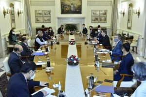 ‘And we both agree, I think strongly that any future government Afghanistan has to be inclusive and fully representative of the Afghan people. But ultimately, this has to be an Afghan-led and Afghan-owned peace process that we will all support,” he said in response to a question.
