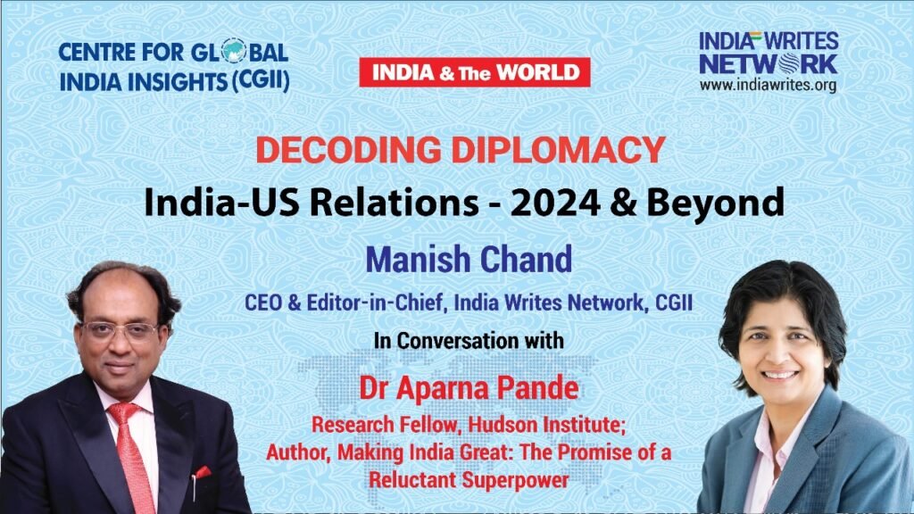 As the US, the world’s most powerful country holds elections, the world’s attention is fixed on the potential ramifications, particularly for India, which has emerged as the world’s fastest-growing major economy and a preeminent partner of Washington. In this wide-ranging conversation, Mr. Manish Chand, Founder- CEO, Centre for Global India Insights and India Writes Network and, speaks to Dr. Aparna Pande, Research Fellow at the Hudson Institute, Washington, and an expert in South Asia, on the potential impact of the 2024 US elections for India, the India-US relations, and the world.