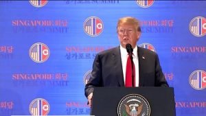 The maverick US leader claimed that he has managed to gain significant concessions from the North Korean leader. These concessions, according to Mr. Trump, included a detailed plan for denuclearization, release of the American hostages and bringing back the remains of the martyred American soldiers who died fighting in the Korean war decades ago. Looking ahead, Mr Trump said that he expected the denuclearization process to start “very, very quickly” and revealed that US Secretary of State Mike Pompeo and North Korean officials would hold follow-up negotiations “at the earliest possible date.” In his trademark swagger, Mr Trump said that Mr Kim was more eager on denuclearizing than he was and added that “when he lands, he will start with the process right away. He wants to get it done fast.” Mr Trump, however, clarified that international sanctions on Pyongyang will stay for now as denuclearization “takes a long time, scientifically and mechanically.” Thus, “sanctions will come off when we are sure”, “until then, the sanctions will prevail,” he said. In another major announcement that must have been music to the ears of the North Korean leader, Mr Trump said that the US will stop joint military exercises with South Korea and stressed that it would save Washington a tremendous amount of money. Mr. Trump also announced that “he will be inviting Chairman Kim to the White House.” “We want to go further down the road.” On being asked about the human rights violations in North Korea, Mr. Trump said “it’s a rough situation right there” but added casually: “It’s rough in many places and not just in North Korea.” “I now have good relations with Kim.” President Trump also declared that North Koreans “are the great winners of today” and South Korea and Japan will help North Korea in denuclearizing. High stakes for Trump