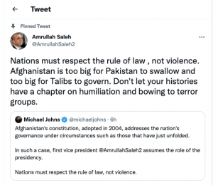 Mr Saleh, who was a member of the anti-taliban Northern alliance during 1990s, later rose to prominence when he became the head of Afghanistan Intelligence Agency in early 2000s. In 2017, Saleh became a part of the Ghani Cabinet and consequently became the Interior minister in 2018. Mr Saleh’s present location is believed to be in the Panjshir Valley, which is not in control of Taliban at present. He is currently believed to be in contact with various anti-Taliban forces, including the son of the Ahmad Shah Masoud, Ahmad Massoud. In an interview to Atlantic Council, Ahmad Masoud said that he is not willing to accept an afghan government marked by ‘extremism and fundamentalism’. Saleh was a follower of Masoud’s father during the 1990s. The defiant Afghan leader is working on opposing the Taliban and has been trying to gather the remaining Afghan forces, as well as support from the regional players as well as USA. Afghan Ambassador to Tajikistan Zahir Aghbar also emphasized that Mr. Amrullah Saleh will be the president of Afghanistan. (Abhishek Sharma contributed inputs for this article)