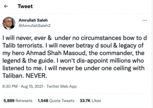 On August 17, Mr Saleh claimed to be the president of the Islamic Republic of Afghanistan, according to the Constitution of Islamic Republic of Afghanistan, as President Ashraf Ghani left the country. He also said “I am consulting with all leaders of the country to strengthen this position.’ The Afghan leader urged everyone to ‘JOIN THE RESISTANCE’ after the POTUS address on Afghanistan where he blamed the Fall of Kabul on the Afghanistan political Leaders and the collapse of Afghan Military. Saleh’s current strategy The resistance against the Taliban by Saleh is not something new. “I will never betray the soul and legacy of my hero Ahmad Shah Masoud,” he said. Mr Saleh belongs to the Panjshir Valley in the North of Kabul, approx. 200km from the Tajikistan border. This Valley has traditionally been anti-Taliban, and even fought and defeated them in 1990s.